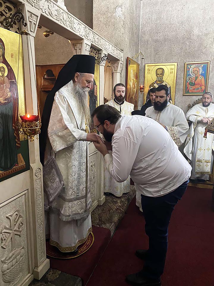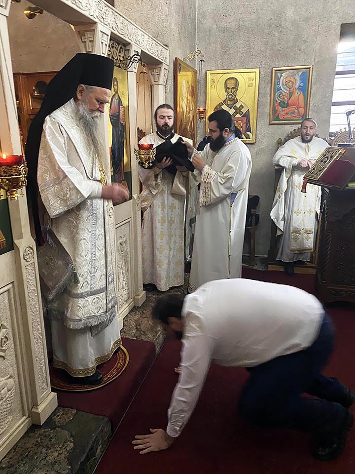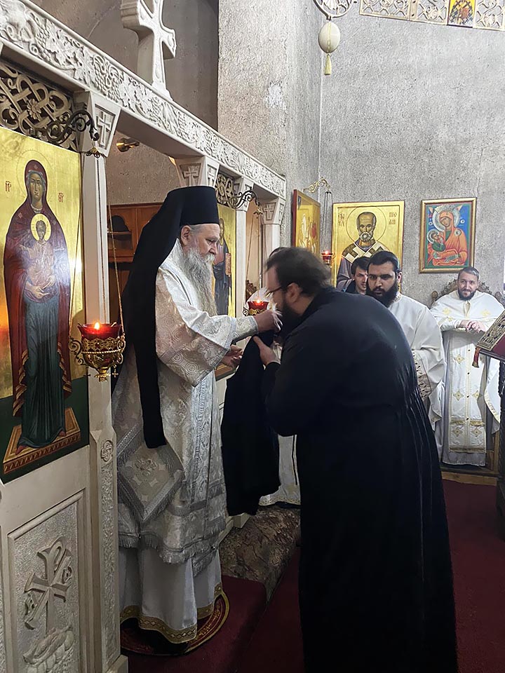 Прије Свете Литургије Епископ Јоаникије је у првине монашкога лика, подрасника и скуфије, одјенуо послушника Стефана Зорића, апсолвента теологије на Православном Богословском Факултету Универзитета у Београду.