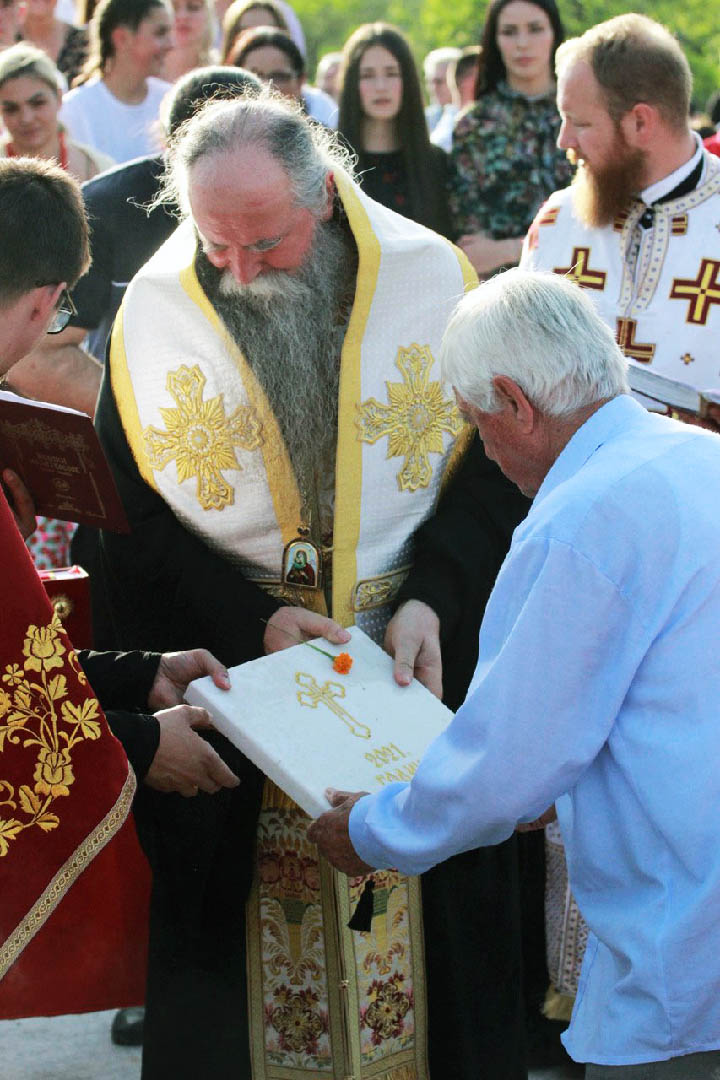 “Велики неимар који је много цркава испројектовао у лимској долини, и ниједан пројекат није наплатио. Велика је његова заслуга за обнову, изградњу светиња у лимској долини. Нека га Бог за то награди и благослови, као и све вас који ћете у име Божије овдје прилагати свој труд и своје новце. Све то да буде са намјером да изграђујте међусобну слогу”, поручио је владика Јоаникије, пожељевши да брзо дође дан да на храму заблиста Часни крст Господњи и да се храм освешта.
