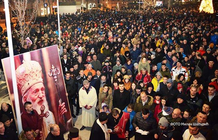 По одслуженом Молебану, ријеке вјерног народа, а процјењује се да је било око 15 хиљада, предвођене свештенством и монаштвом, сливале су се из Саборне цркве, преко Трга Шака Петровића ка главном градском Тргу „Слободе“, уз појање духовних пјесама, молитви, са иконама и свијећама у рукама.