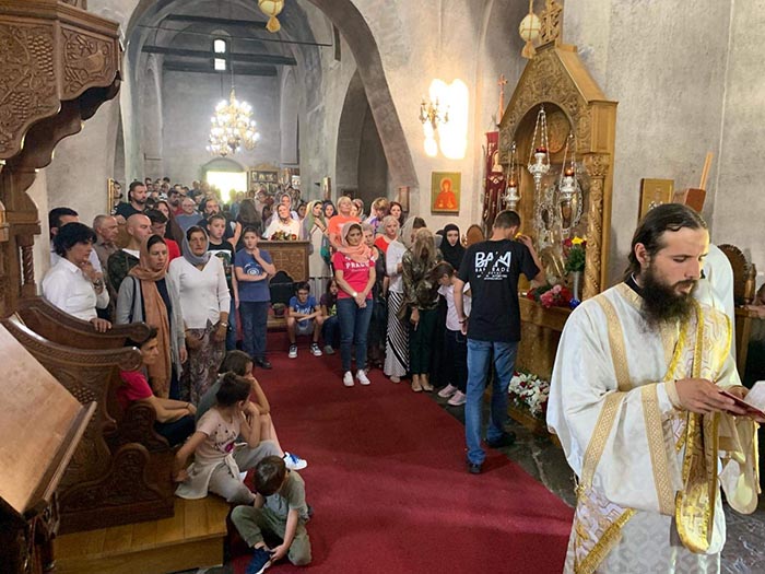 По уношењу у храм, вјерници су приступили поклоњењу и цјеливању Иконе Пресвете Богородице Побједитељне и Иконе Пресвете Богородице Тројеручице, у спомен чијег празника је служена света Литургија.