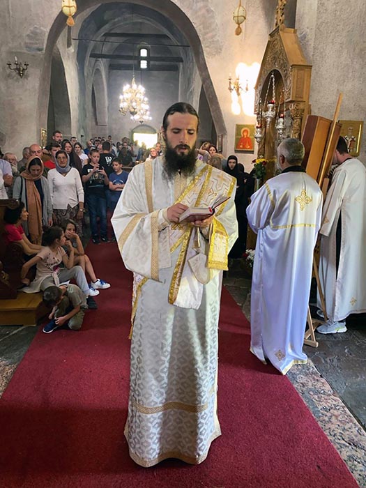 „Диван је дан данашњи у којем нас је Господ удостојио да, на празник Тројеручице, чија је двојница овдје, у овој светињи древној, а оригинал се налази у манастиру Хиландару, имамо, данас, још једну Икону Пресвете Мајке наше Богородице мироточиву Побједитељницу. Управо у ово вријеме, када су наиша искушења која нас прогањају, Господ нас укрепљује, оснажује, даје потпору и поручује нам: Не бојте се, јер сам ја са вама и нико не може против вас“, бесједио је о. Драган.