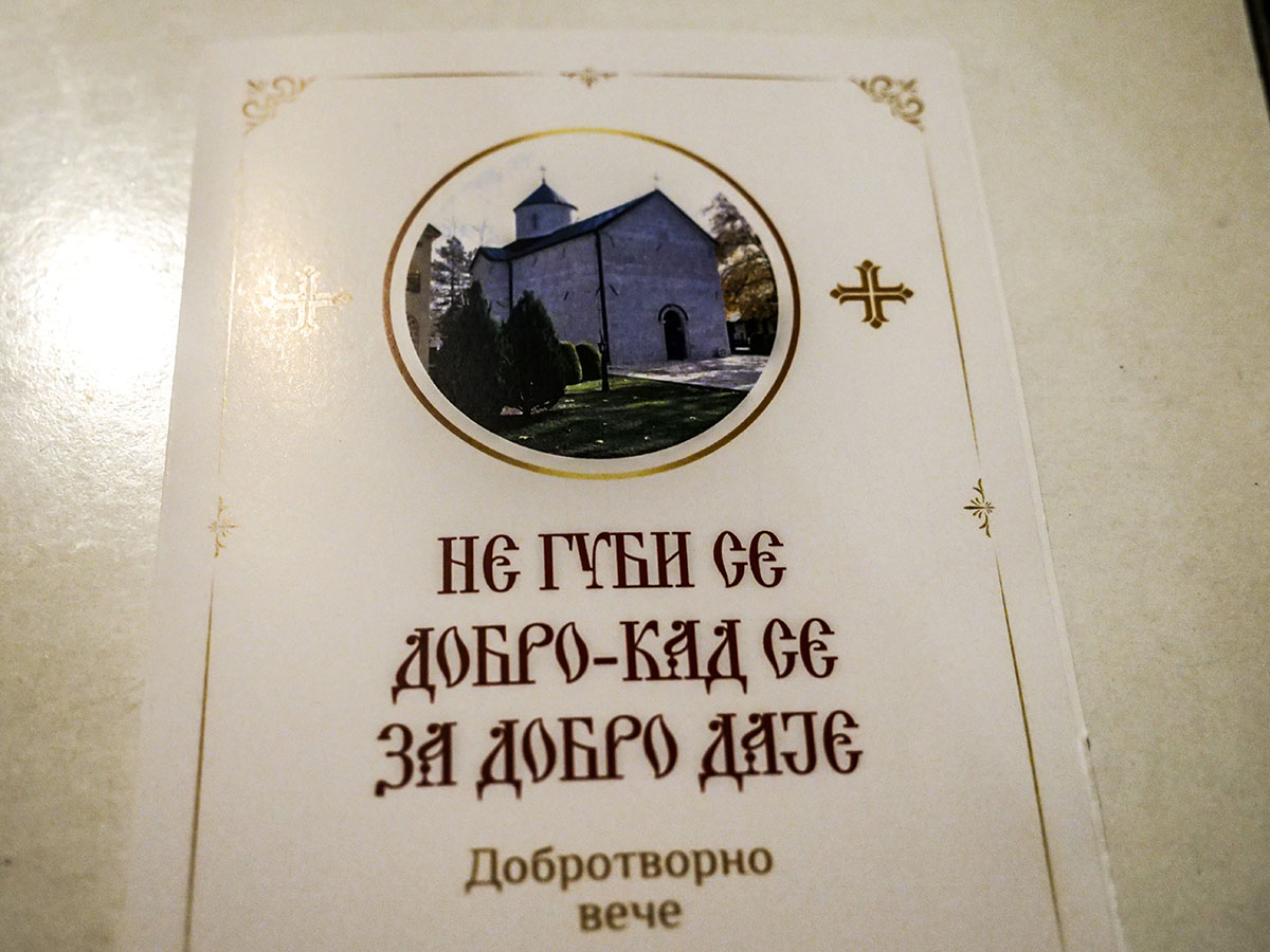На флајеру, који је пратио програм ове добротворне вечери пише да је хришћански храм мјесто на коме се остварује и кроз њега се појављује најдубље заједништво човјека и човјека, човјека и твари, човјека и Бога, мјесто гдје су Небо и земља једно; гдје су Бог, човјек, и цијела творевина заједно.