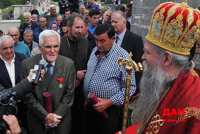 Владика је, овом приликом, уручио високо одликовање Епархије будимљанско-никшићке Медаљу Светог Георгија II степена г.-дину Стевану Вујичићу и архијерејске грамате браћи Здравку и Зорану Миловићу.
