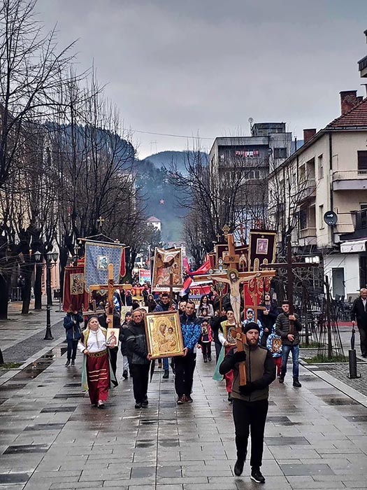 Након Молебна улицама овог града кренула је торжествена свенародна литија у славу Божију и побједе светих икона, у одбрану светиња и вјере православне, у којој је ношена икона Богородице Јерусалимске, до храма Светог Николе у Никољцу.