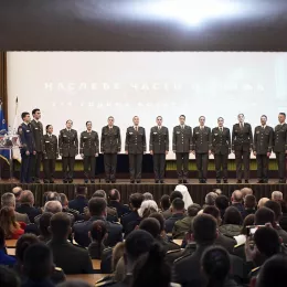 У обраћању присутнима, пуковник Благојевић је рекао да је историја Војне академије дуга 175 година и да је с разлогом славна те представља вечну инспирацију онима који у њој живе и раде, али и свим официрима који су у њој стасавали. - Вечерас смо се овде окупили да заједно са нашим кадетима прикажемо документарни филм о Војној академији и одамо признање онима који су највише допринели нашим лепим утисцима о филму. Захваљујем „Застава филму“ на још једном заједничком остварењу, редитељу филма, али и свим кадетима, командирима, командантима и професорима који су учествовали у филму или дали неки други допринос – рекао је пуковник Благојевић и честитао Дан Војне академије њеним припадницима.