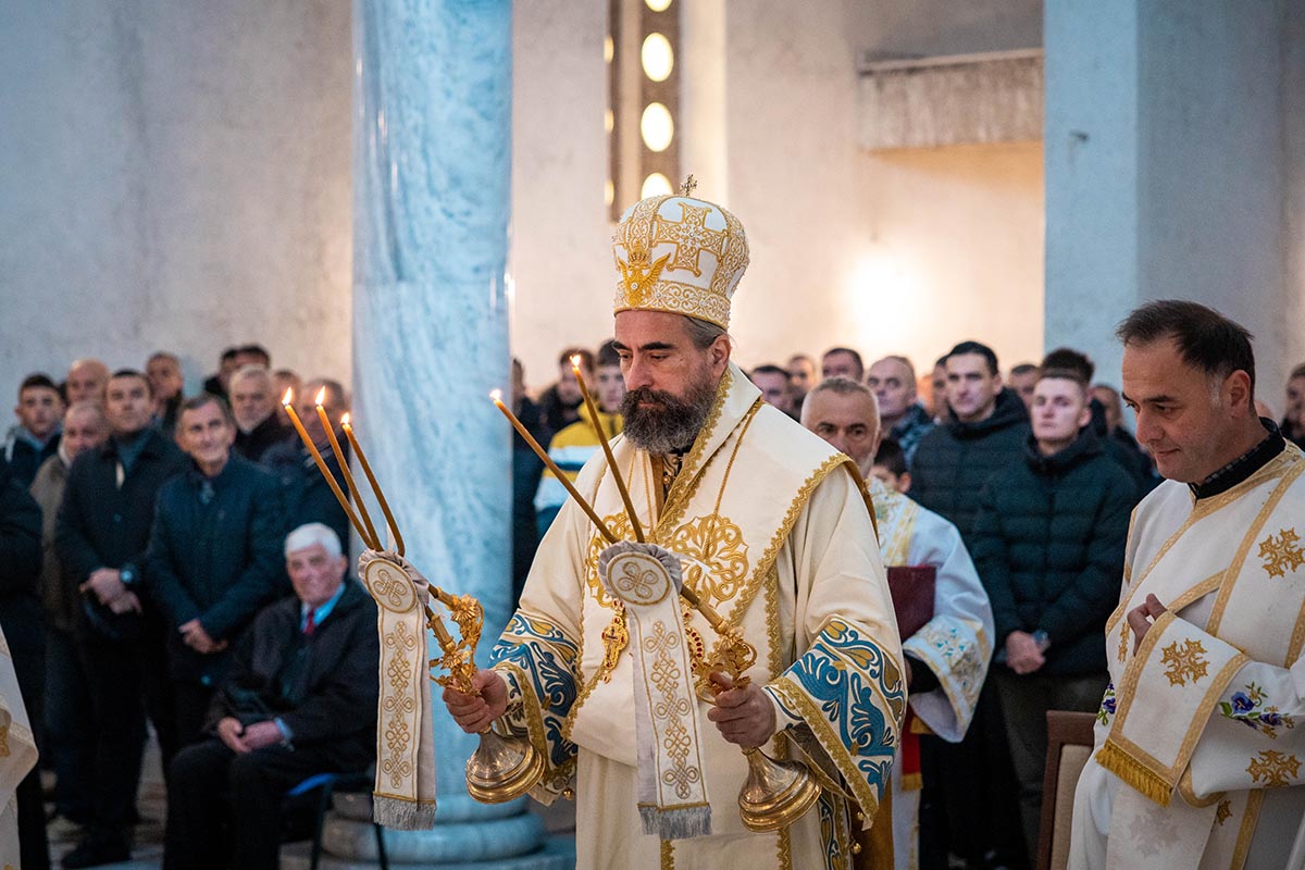 Владици су саслуживали: протојереј-ставрофор Синиша Јанковић, јереји Миленко Ралевић, Милош Мизић и Дарко Јовановић и ђакон Никодин Раденовић.