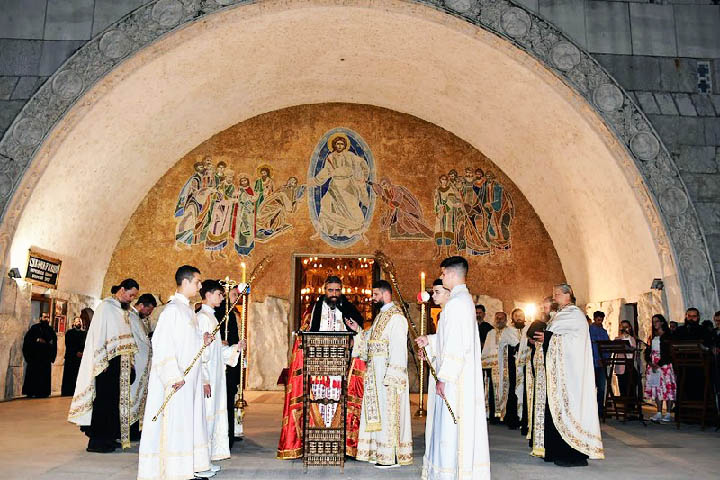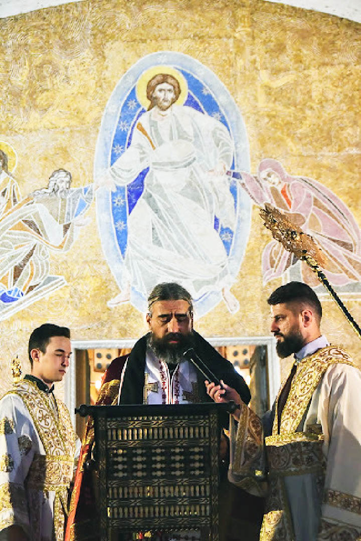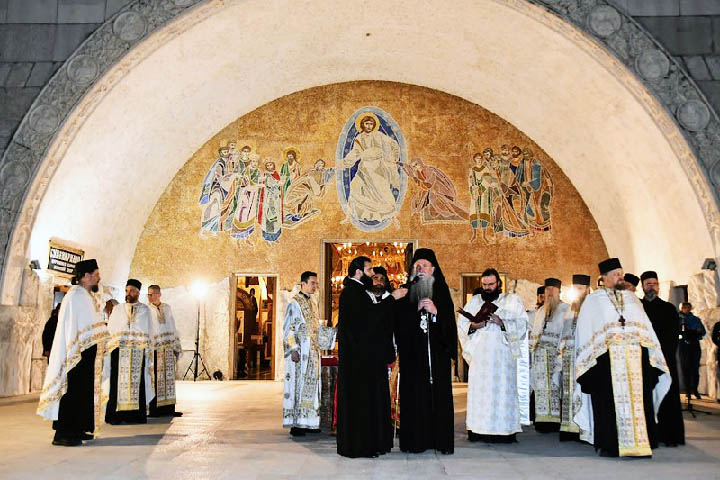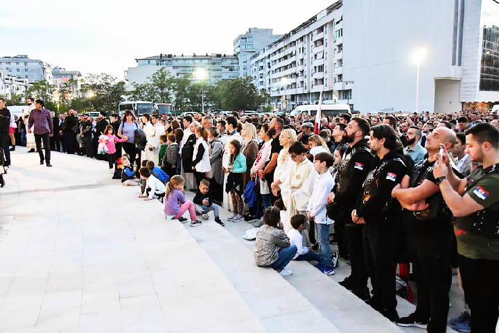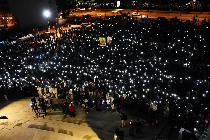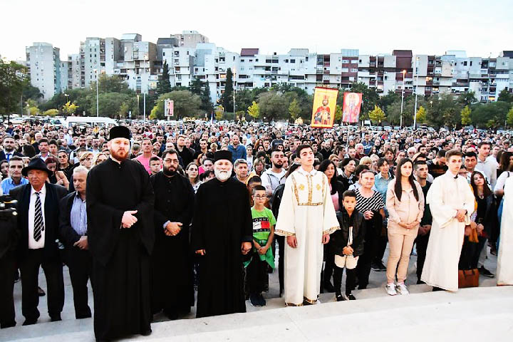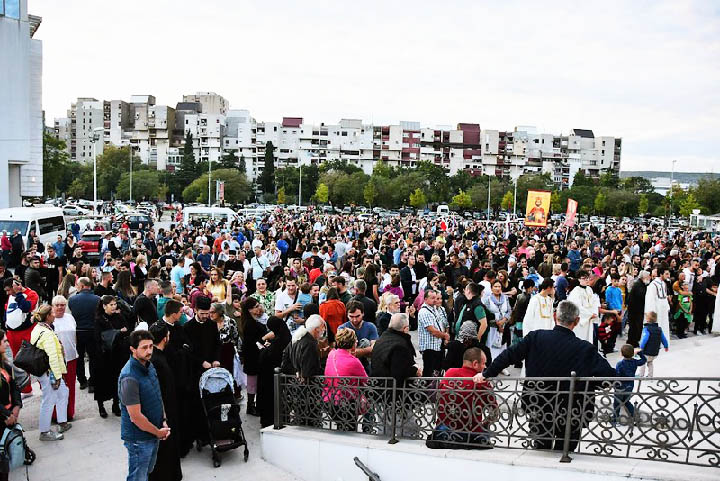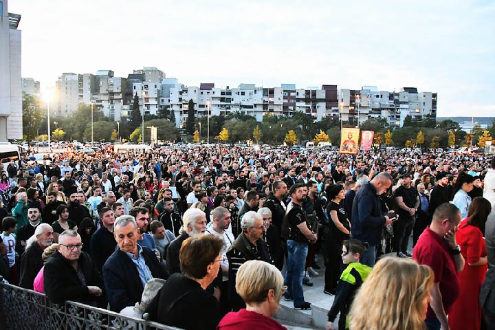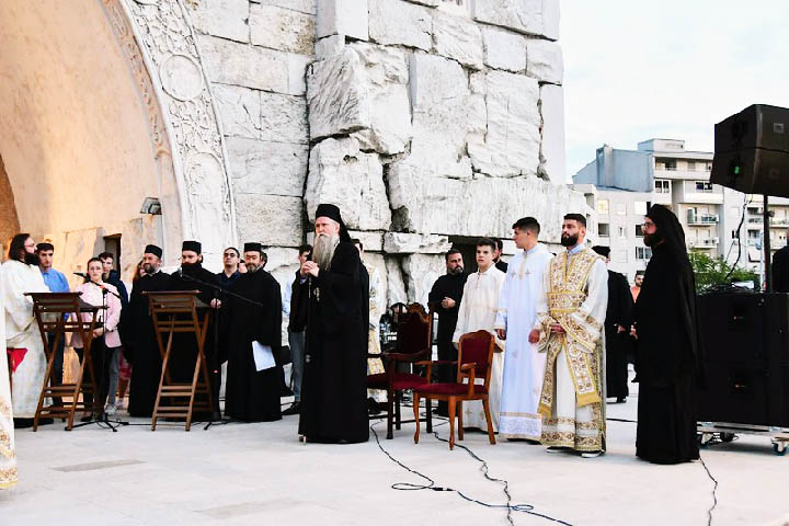 Епископ будимљанско.никшићки г. Методије служио јс вечерас на платоу испред Саборног храма Христовог Васкрсења у Подгорици молебан за светињу брака и очување породице.