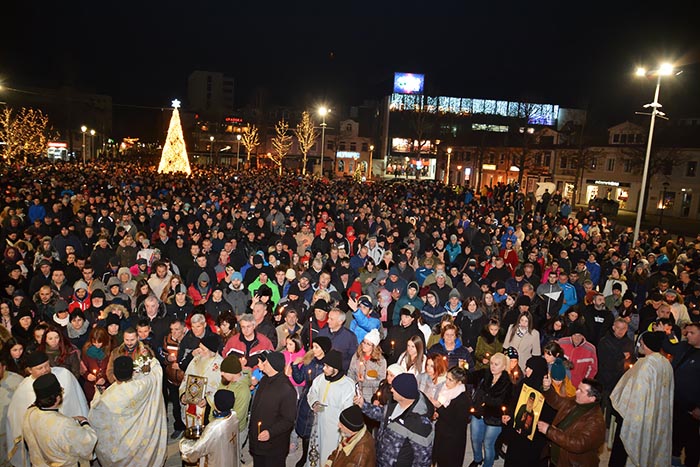 Вјерници, а процјењује се да их је било око 12 хиљада, предвођени свештенством, носећи своје крсне иконе и упаљене свијеће, прошли су у молитвеном ходу градским улицама све до Tрга „Слободе“ у центру Никшића.