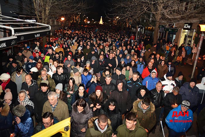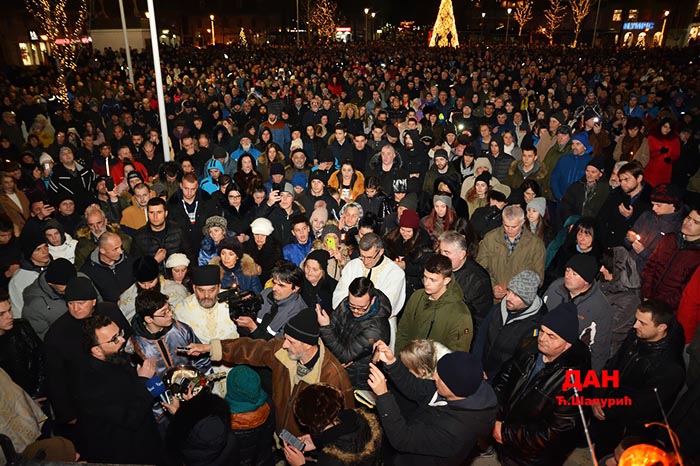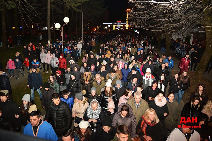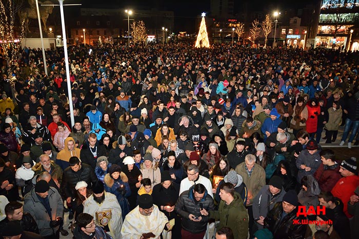 И у вечерашњем мирном, достојанственом, хришћанском молитвеном сабрању, учествовало је око 20 хиљада грађана Никшића, који се не мире са неуставним и нецивилизацијским Законом о слободи вјероисповјести, изгласаним у Скупштини Црне Горе.
