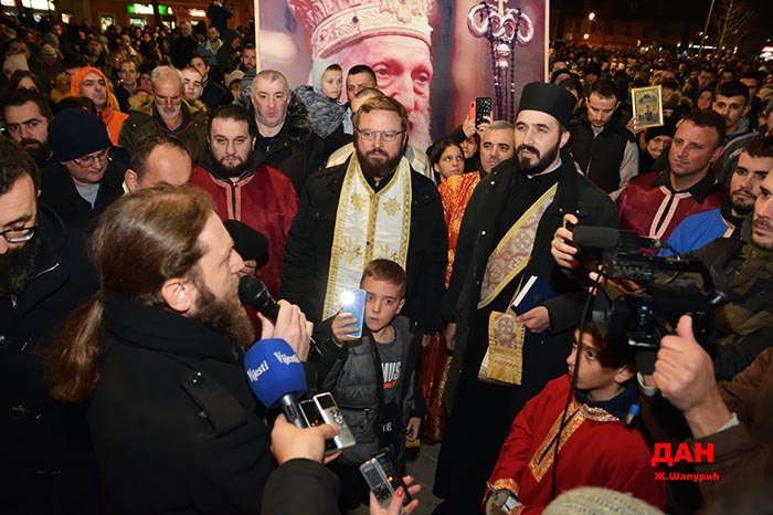 „Тим гласом проламају се небеса, јер тај глас јасно говори „Не дамо светиње!“ и зато вас, браћо и сестре, молимо и кумимо именом нашег Свеца и заштитника, уздигнимо се изнад наших личних страначких и националних подјела и размирица, јер није у бури, жестини и свађи Господ, Господ је у гласу јединства, слоге, радости и љубави, да сви заједно без разлике, опет и пет, кажемо: Не дамо светиње, јер у њима је наше биће“.