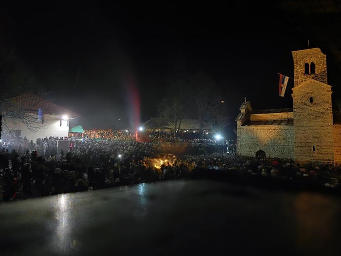 „Овај догађај радује Небо и земљу, анђеле и људе, старце и дјецу, обузима све нас који се сабирамо око бадњака које налажемо у славу Његовог рођења. Ово је дивни народни обичај, који је благословио Свети Отац наш Сава Српски, да налажемо српске бадњаке, као што се то, увијек, радило, пјевало и славило. И ми тако славимо, налажемо бадњаке и мирбожамо се, миримо, једни друге грлимо, опраштамо, превазилазимо наше неспоразуме у име Рођења Христовог“, поручио је Епископ будимљанско-никшићки.