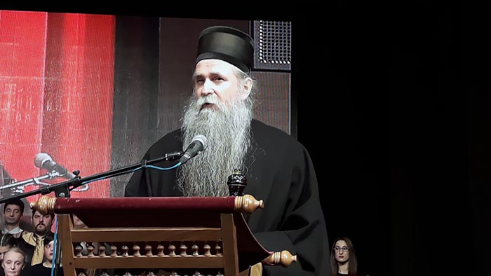 Академију је благословио Његово Преосвештенство Епископ будимљанско-никшићки Г. Јоаникије, честитајући велики јубилеј – осам вјекова од оснивања Српске православне Цркве. У том значајном датуму наше историје важно је, по ријечима Преосвећеног Епископа, сагледати улогу личности којој је била повјерена дужност да оснује помјесну Цркву у српским земљама.