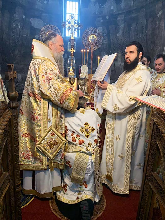 Током свете службе Божје Преосвећени Епископ је рукоположио у чин ђакона о. Михаила (Пајовића), сабрата Манастира.