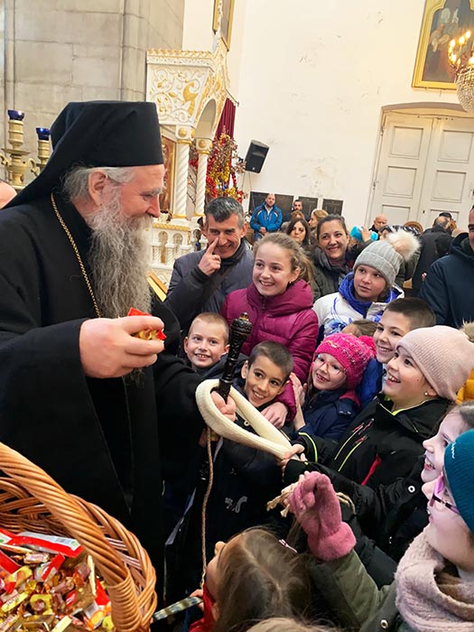Његово Преосвештенство Епископ будимљанско-никшићки Г. Јоаникије служио је у 29. недјељу по Духовима, Недјељу Светих Отаца, 5. јануара 2019, Свету Архијерејску Литургију, у Саборном храму Светог Василија Острошког у Никшићу.