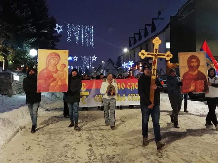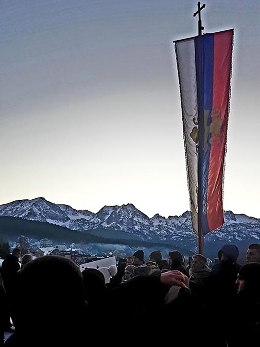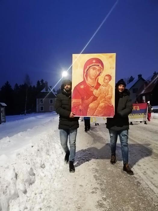 Слика са једне од литија на Жабљаку, у којој се види како народ кроз јаку мећаву корача, носећи крст и иконе, обишла је читав свијет и постала симбол борбе која се води данас у читавој Црној Гори.