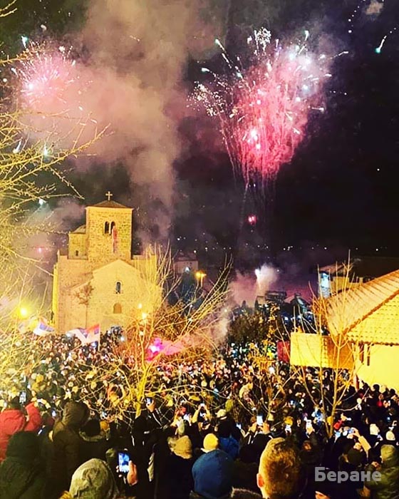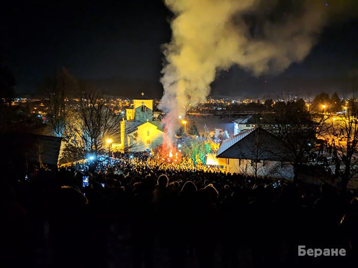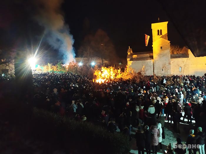 Хиљаде православних вјерника присуствовало је, на Бадње вече, у понедјељак 6. јануара 2020. централном налагању бадњака у Епархији будимљанско-никшићкој, пред катедралним манастиром Епархије, Ђурђевим Ступовима.