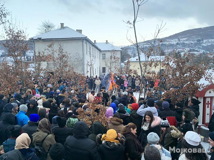 Његово Преосвештенство Епископ будимљанско-никшићки Г. Јоаникије благосиљао је на Бадње вече, у понедјељак 6. јануара 2020, бадњаке пред Саборном црквом Христовог Рођења, у Мојковцу.