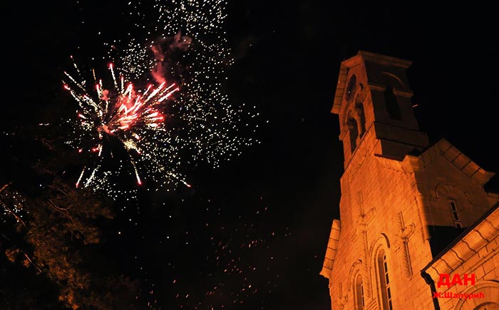 „Разгорите огањ у срцима вашим, понајприје, јер је то онај истински, прави храм који не потпада ни под какве законе земаљске, осим под законе небеске, храм Духа Светог у срцу нашем. Кад њега обновимо, обновили смо и одбранили све оне зидове и храмове, који су подигнути рукама наших предака и под чијим сводовима ми стојимо вечерас“, рекао је Владика Методије.