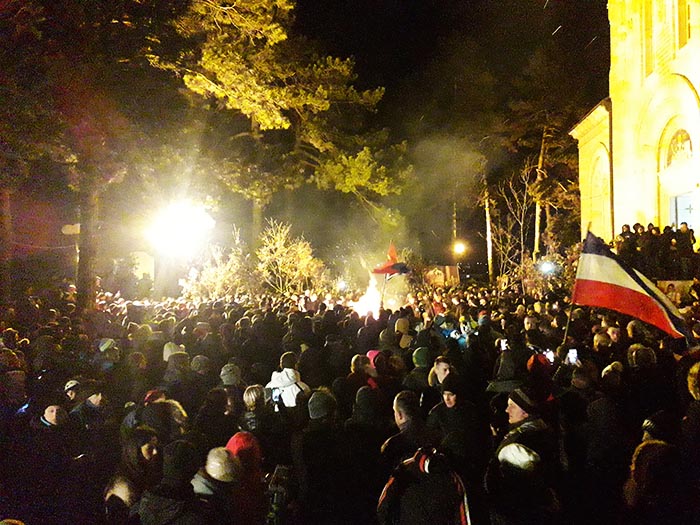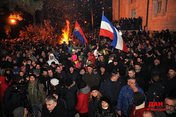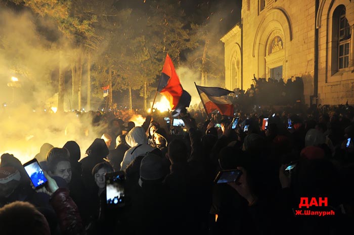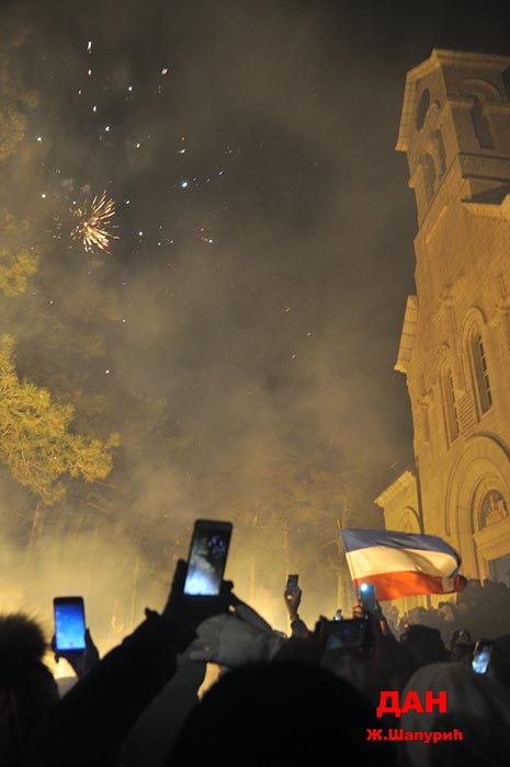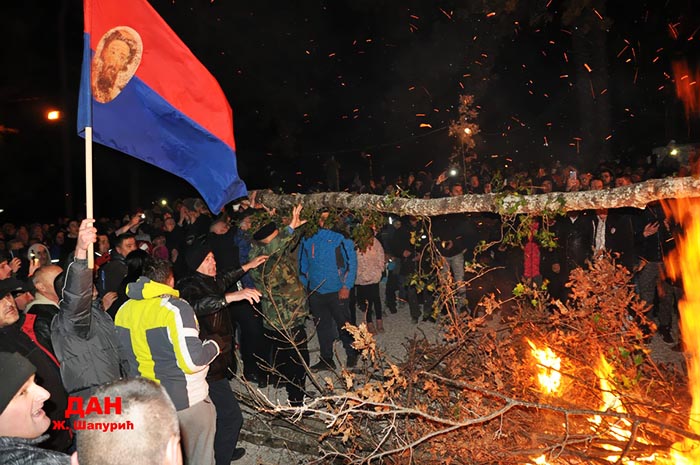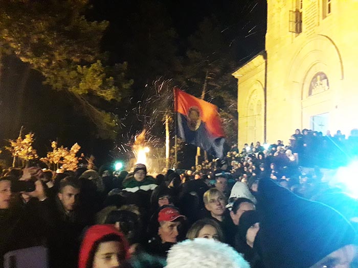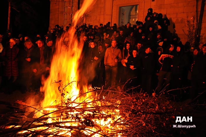 Хиљаде грађана Никшића присуствовале су, на Бадње вече, у понедјељак 6. јануара 2020, налагању бадњака пред Саборним храмом у Никшићу.