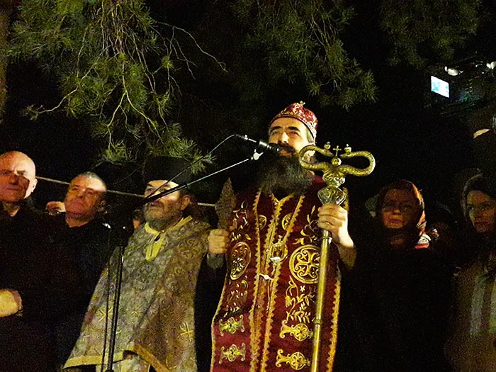 У име Црквене Општине Никшић, обратио се протојереј Остоја Кнежевић, старјешина никшићког Саборног храма, који је прочитао Саопштење Епископског Савјета СПЦ у Црној Гори.