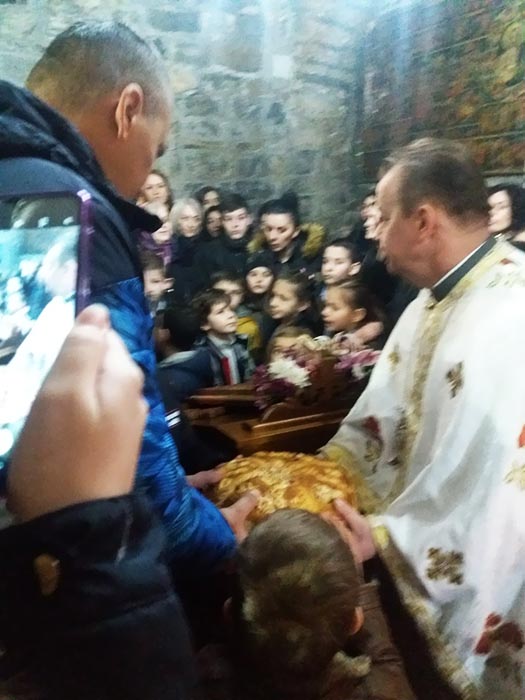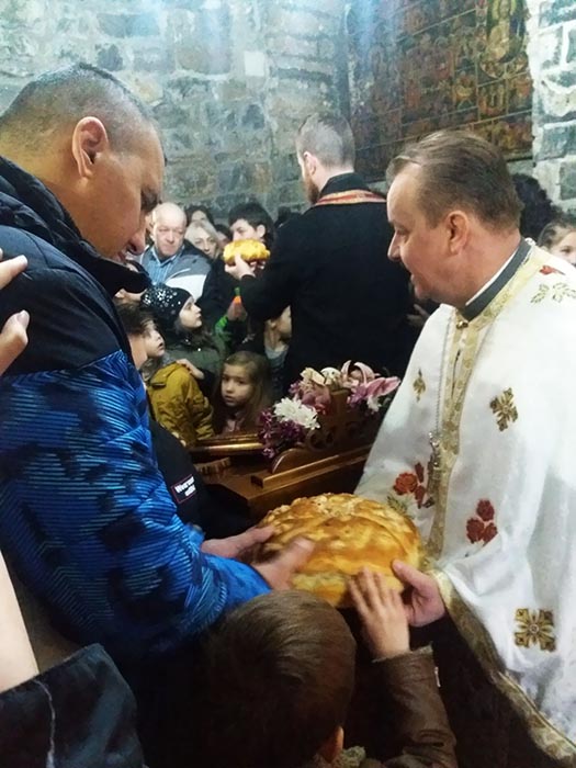 Домаћин славе био је Петар Војиновић са сином Веселином. Он је дио славског колача предао маленом Слободану Јеврићу, чија ће породица бити домаћин наредне године.