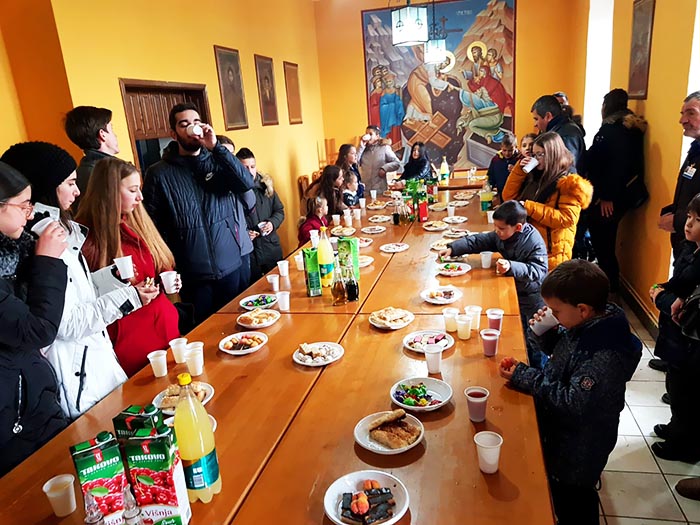 У току Литургије освештан је и преломљен славски колач у славу Светог Оца нашег Саве. Имендан је прославио јеромонах Сава (Вукајловић), сабрат манастира Ђурђеви Ступови.