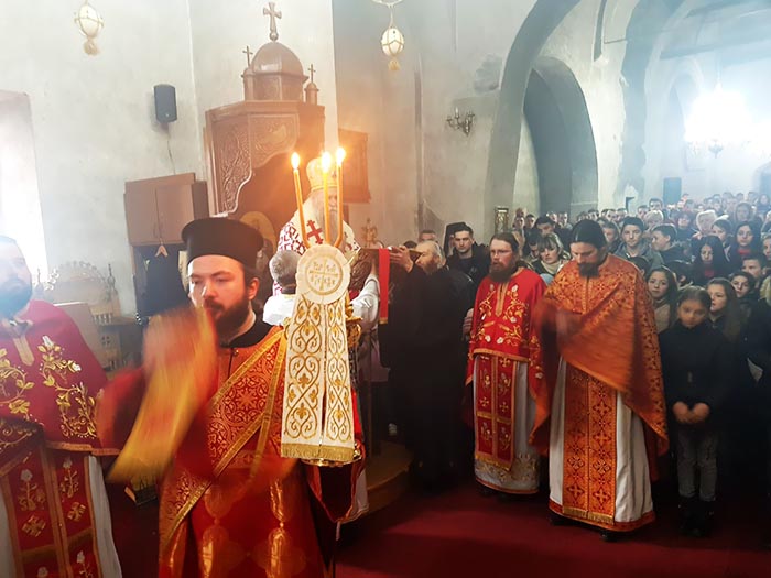 „Свети Сава колико је био српски, толико је био и васељенски. Он је на Светој Гори примио васпитање да припада православној васељени у којој су и остали народи Грци, Бугари, Руси, Грузини и сви православни. Са Свете Горе Атонске дошао је у отаџбину као један од најпросвећенијих духовника свог времена. Зато је његова мисија била тако успјешна, нарочито када је примио благодат архиепископске службе да оснива епископије, да утврђује манастире, свештенике, монахе, народ. Српски народ се колебао десно или лијево, неко хоће Риму, неко Цариграду, неко да се врати уназад у паганство. Тек са Светим Савом наш се народ потпуно окреће православљу, приљубљује се уз Христа, а мудра поука и дјеловање Светог Саве су, коначно, наш народ утврдиле у вјери православној“, бесједио је Његово Преосвештенство.