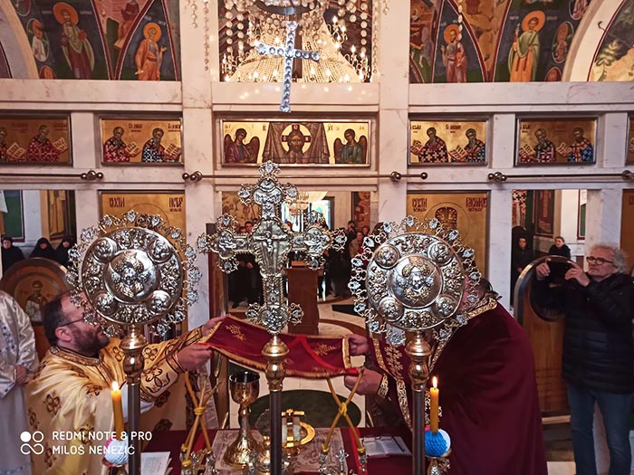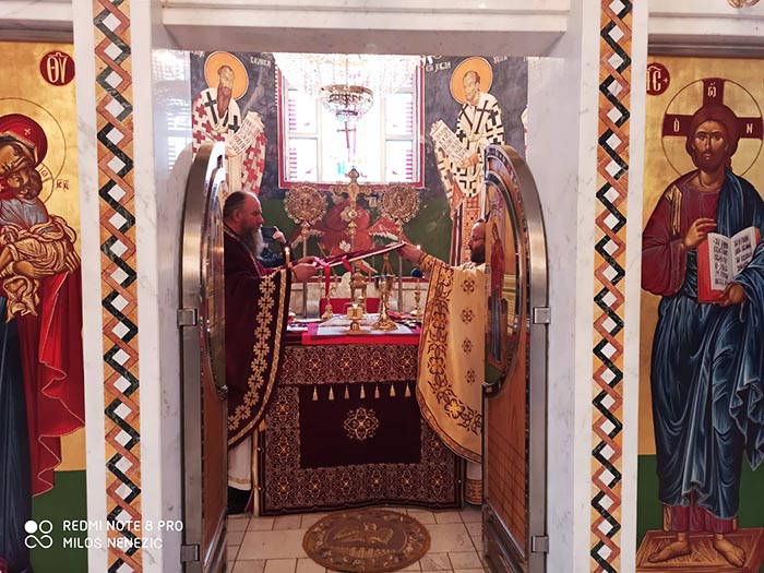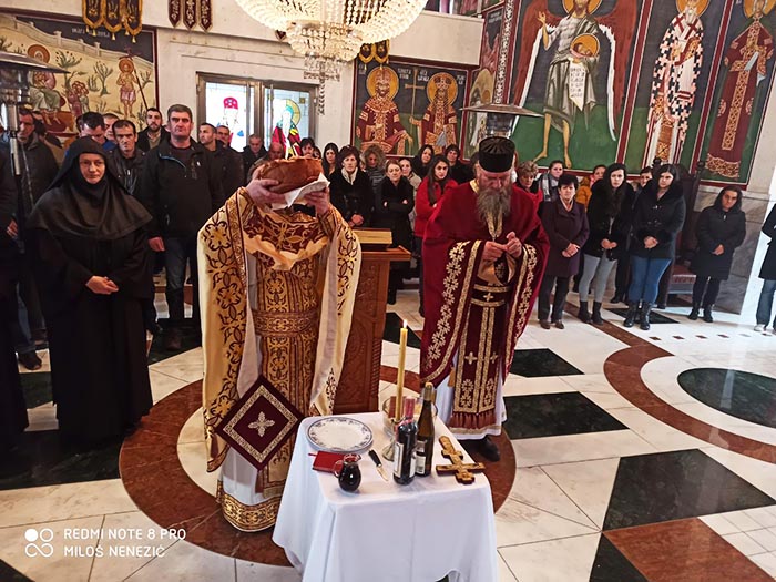 Литургију су служили архимандрит Исаија (Крговић), игуман манастира Бијела код Шавника и јеромонах Никон (Кокотовић), игуман манастира Доњи Брчели у Црмници.