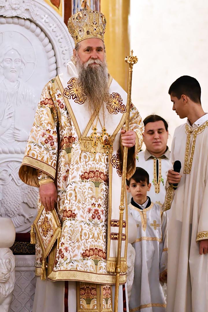 Преосвећени владика Јоаникије је сабране вјернике поучио ријечима литургијске проповиједи, подсјећајући да је Богомладенац – Спаситељ свијета сишао с неба као Син Божји, примивши људску природу ради нас и нашега спасења. Иако цар над царевима и господар над господарима, Христос се није родио у царској палати, него у мрачној витлејемској пећини, која је била претворена у шталу, положен у сточним јаслама на слами. Тиме је, како је казао владика, показао дубину свога смирења и снисхођења палом човјеку.