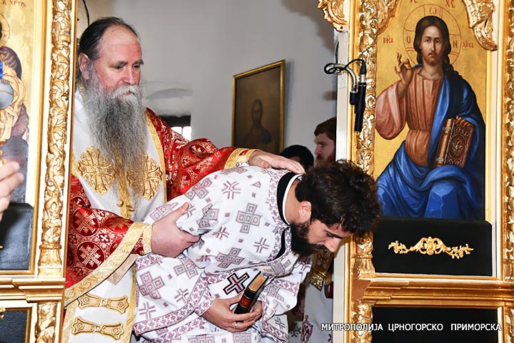 “Да наградимо тројицу свештенослужитеља који су ревносно служили Цркви Божјој и били вјерни саслужитељи у свему нашем блаженопочившем Митрополиту и да рукоположимо новога ђакона Цркве Божије Крста Пламенца. И само име и презиме Крста Пламенца упућује на ову Свету службу. Крсто значи крстоносац, прави хришћанин, а презиме Пламенац сигурно има везе са нашом вјером. А то је посвједочено – и вјера треба да буде пламена код свих хришћана, а нарочито код свештенослужитеља”, нагласио је Владика Јоаникије.