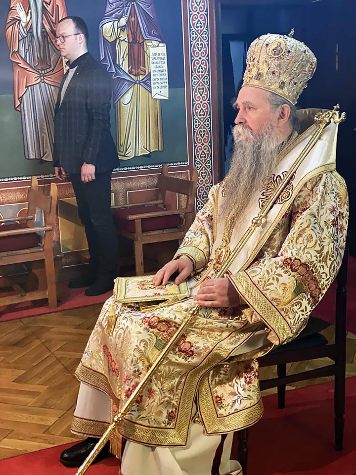 Владика је говорио о богослужењима дана у којима се налазимо, као и о животу светог Евстатија, рекавши: "О њему не знамо баш много. Његово житије, написано у књигама је доста кратко. Али он се потрудио да у току свог живота служи Господу у све дане своје, од најраније своје младости. По свој прилици био је ученик светог Саве, макар је имао прилику да га види у древној Епископији будимљанској, када је био дијете јер је рођен недалеко од манастира Ђурђеви Ступови, у Будимљанској жупи. Касније је његов животни пут ишао чудесним током према Јерусалиму, па до манастира Хиландара гдје је био и игуман једно вријеме, па је био постављен на Епископију зетску, а са тог трона дошао је на трон Архиепископа жичких, односно пећких.
