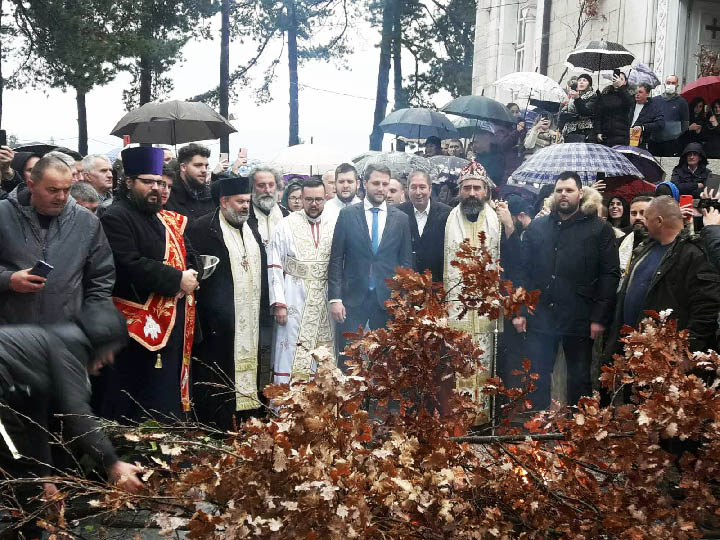 Владика је, потом, са свештенством и вјерним народом, са којима су били и предсједник Општине и Скупштине Општине Никшић, Марко Ковачевић и Немања Вуковић, испред никшићког Саборног храма, освештао и налагао бадњаке.