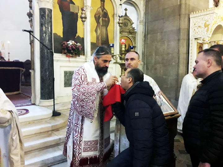 Прије почетка свете Литургије, правом ношења орара Владика је одликовао чтеце Дарка Мрваљевића, Милоша Ненезића и Мирослава Станишића.