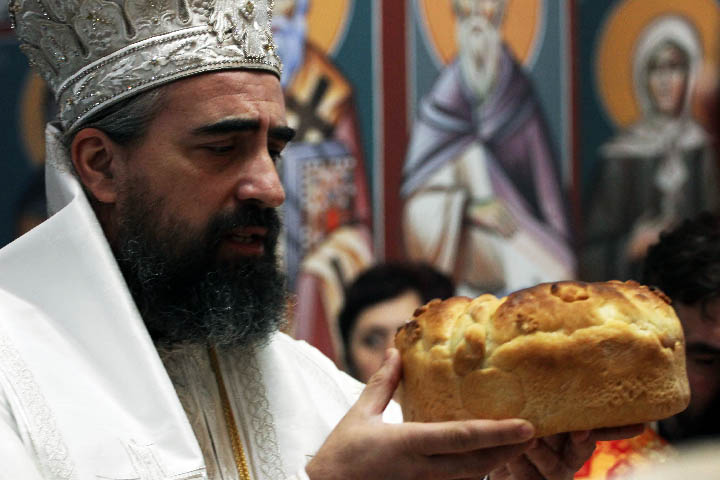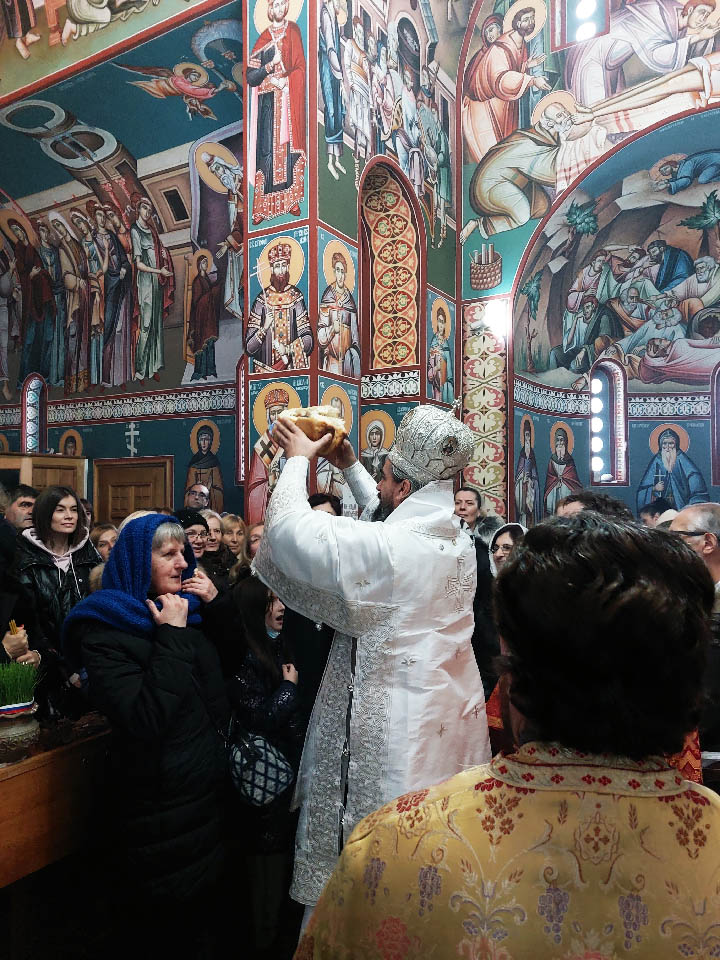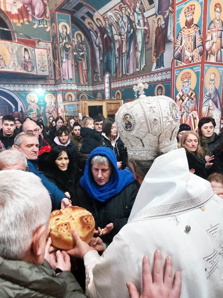 Поводом славе мојковачког Саборног храма, освештан је и преломљен славски колач и жито.