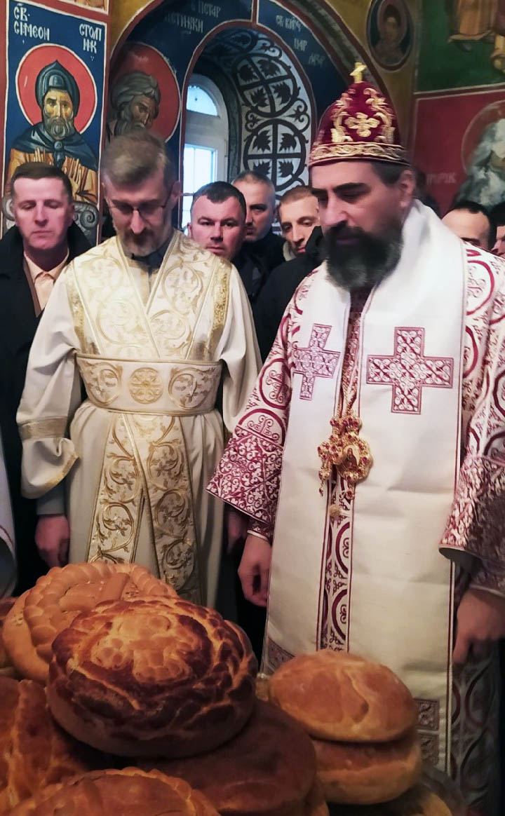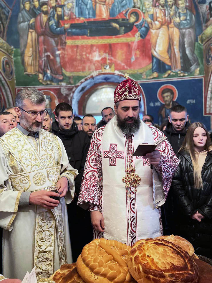 Након Литургије, Преосвећени Епископ је освештао и преломио славске колаче бројних данашњих свечара.