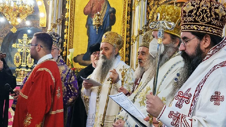 -Браћо архијереји, браћо и сестре, ми Откровењем Божјим, Речју Божјом знамо да смо призвани из небића у биће не да бисмо као такви живели у хоризонтали један биолошки живот који би могао бити испуњен стваралаштвом, разним дометима у свим областима нашега постојања и нашега стваралаштва, него смо из небића у биће позвани као стрела која је испаљена у вечност. Створени смо за Царство Божје и зато наш живот овде на земљи не би требао да буде ништа друго него са једне стране пројава Царства Божјег у нашим животима, а са друге стране предукус тог Царства Божјег овде и сада. Оно што вером нашом и бићем нашим јесте наше опредељење у односу на себе, у односу на свет око себе, у односу на друге људе, јесте и треба да буде израз те реалности Царства Божјег које опет није ништа друго него нови живот. Ми људи саздани и крштени у Цркви Духом Светим јесмо и треба да будемо нови обновљени људи. Зато ми хришћани смрт и не видимо као извор потпуног бесмисла. Смрт не видимо као коначно и крајње о себи што можемо да кажемо, него видимо као саставни део нашега постојања, у исто време Христом и кроз Христа пролазак у тајну будућег века, беседио је патријарх Порфирије и нагласио: