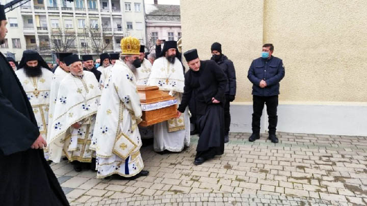 Након свете заупокојене Литургије у Саборном храму Светих апостола Петра и Павла у Шапцу, Његова Светост Патријарх српски г. Порфирије служио је опело над одром блаженопочившег Епископа шабачког Лаврентија.