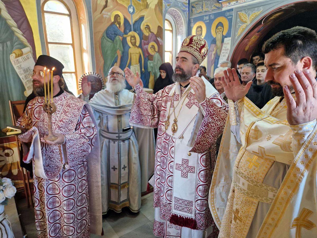 На Литургији, коју је Преосвећени Владика Методије служио поводом крсне славе јеромонаха Николаја (Стаматовића), игумана осве свете обитељи, саслуживало је свештенство и монаштво Епархије и вјерни народ овог краја.