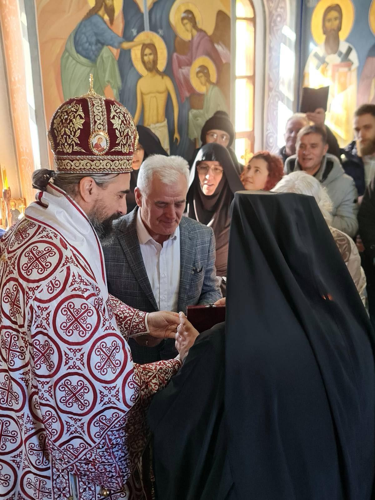 „Наш игуман нас је овдје својом љубављу позвао на његову славу и он је овдје служио и служиће Светом Атанасију као његовом заштитнику, двориће нас да покаже да све оно на шта смо призвани и циљ нашег живота овдје јесте не мјесто, положај, друштвени статус или неки чин, који треба да задобијемо и да имамо да би нам неко одавао због тога неку част и поштовање. Има и тога, између осталог, али то је само споредно и никако не смије бити основно и суштина. Суштина сваког хришћанина јесте да служи, јер Христос је то показао својим примјером када је својим ученицима ноге опрао, па када је, слушајући их како се препиру ко ће од њих имати првенство и бити први међу њима, Он је рекао: Ко хоће међу вама да буде први, нека свима служи. То је наш циљ и наше призвање овдје“, поручио је Епископ будимљанско-никшићки Г. Методије.