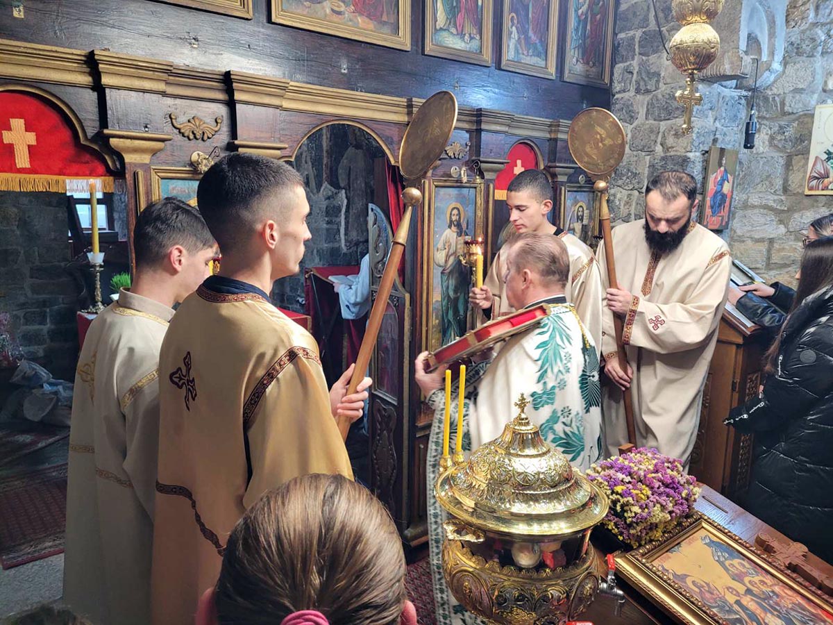 Истичући значај Богојављања о. Дарко је истакао да и бесловесна природа у сусрету са својим Творцем- Богом застане и умири се, јер се мир Божански пренесе и на њу, што се десило у тренутку када је Христос загазио у Јордан, када је ријека застала и почела да тече узводно.