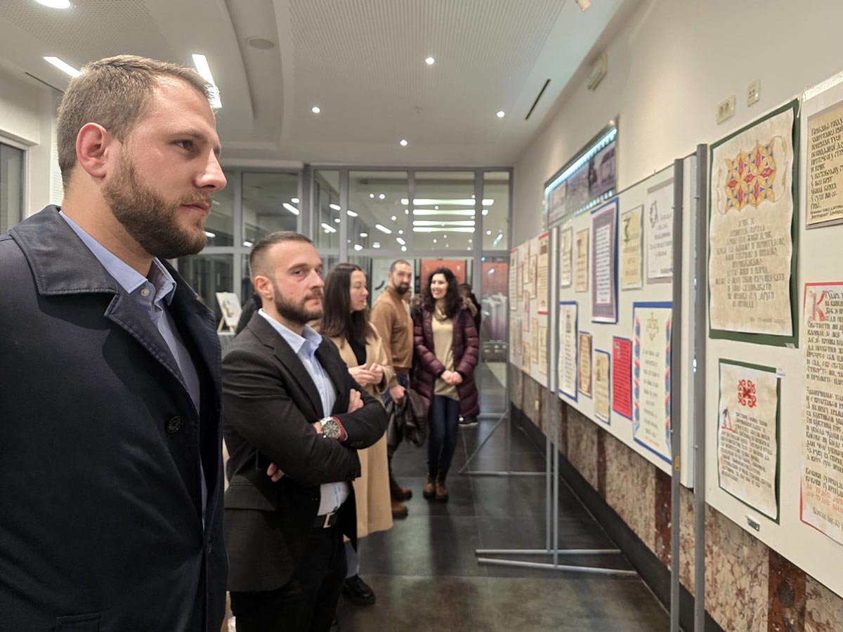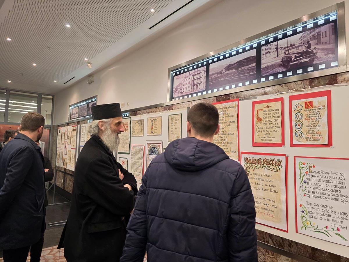 „У наша ћирилична слова утиснута је, како физички, тако и духовно, молитва, вјера, љубав, стрпљење, озбиљан труд и рад, који је заслужан да вечерас овдје, гдје се окупљамо, славећи нашег великог архипастира, наставника и учитеља, ћирилица украси овај простор. Како то да по други пут ова изложба заблиста и да ли је ово интересовање случајно?“