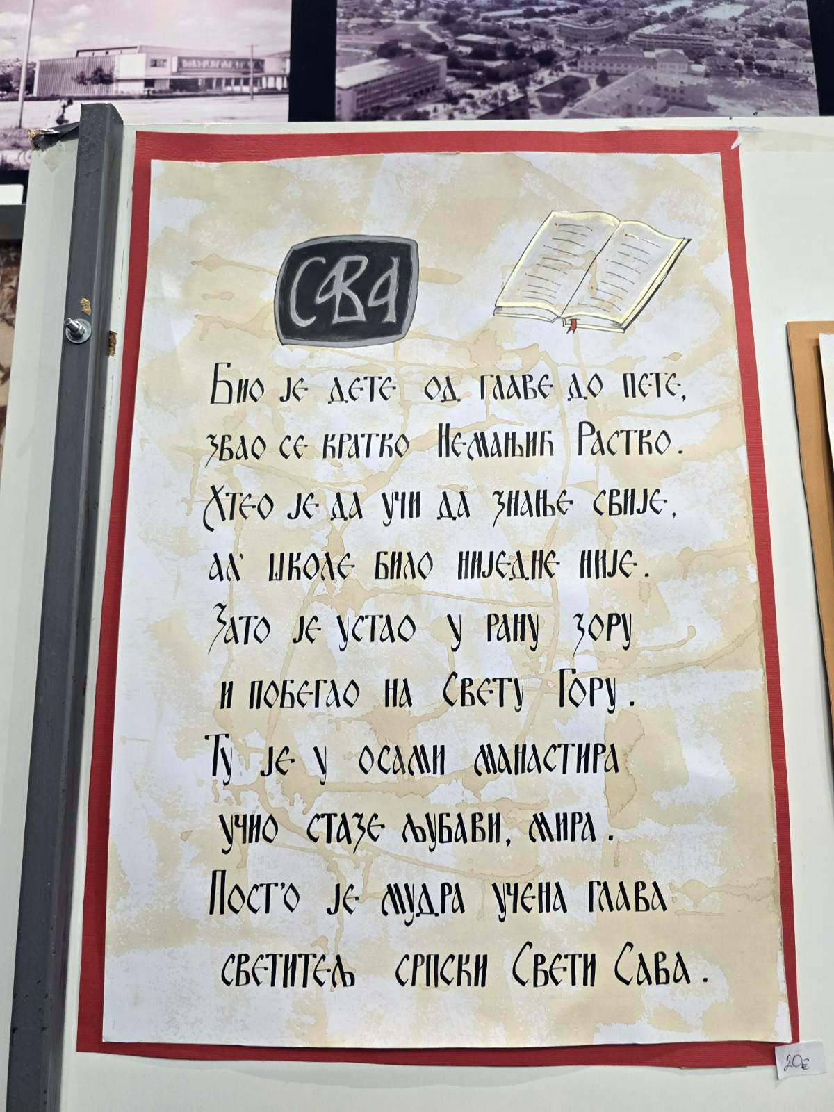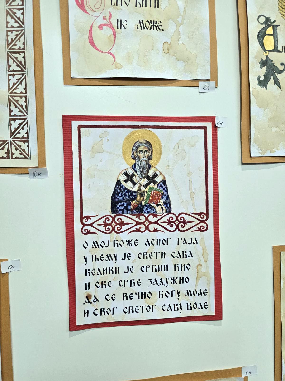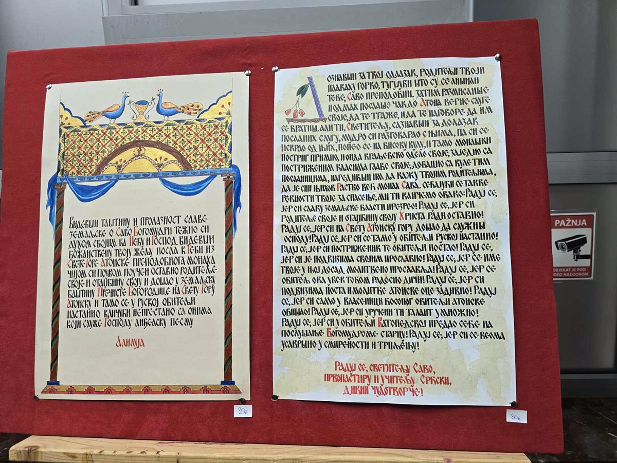 Изложба калиграфских радова, посвећених Светом Сави, који су настали током курса калиграфије „Пауново перо“, отворена је у сриједу 29. јануара 2025. године, у фоајеу Никшићког позоришта.