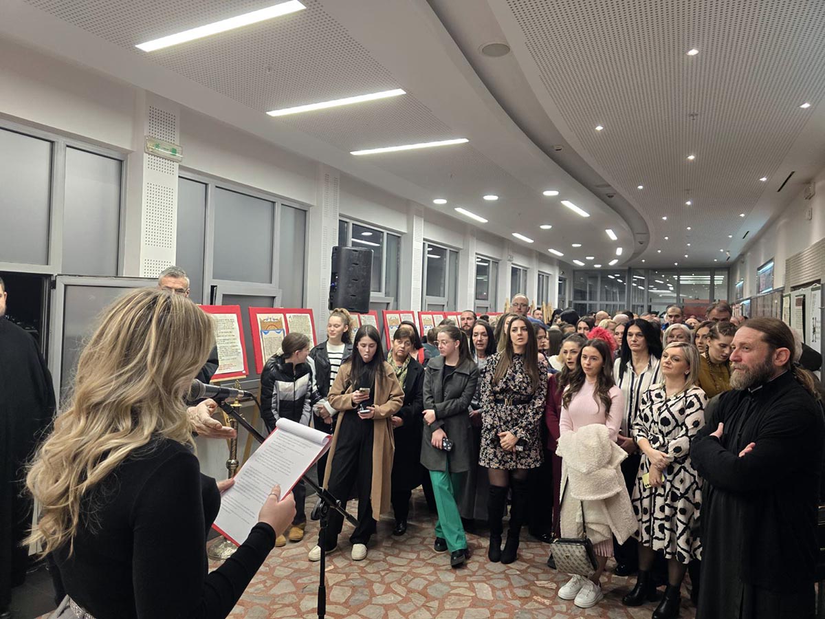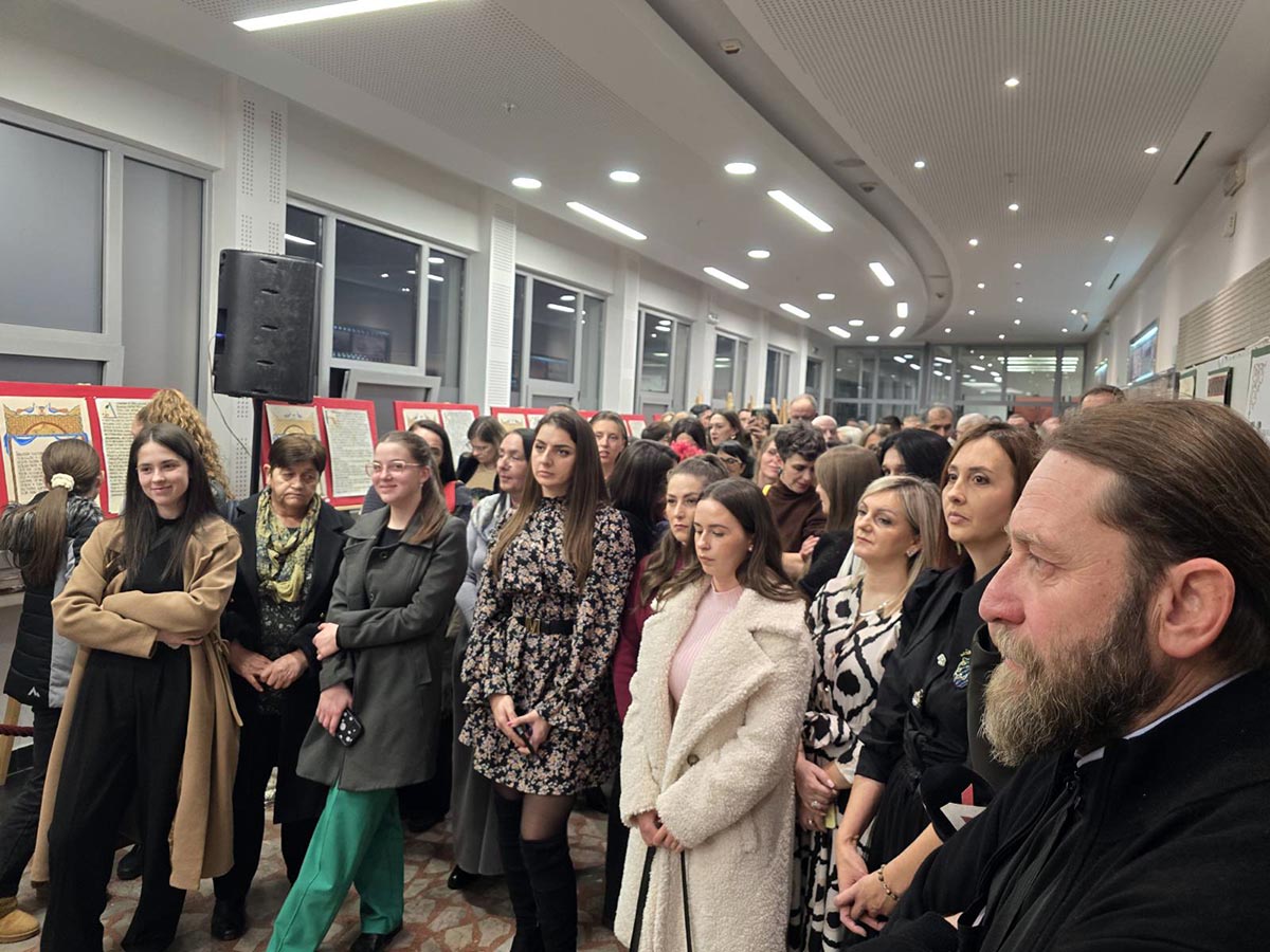 Подсјетио је да као репрезенти тог славног времена и данас постоје Мирослављево и Дивошево јеванђеље, која су у Београду и Цетињу, али и преко 80 рукописних књига, које су у власништву наше Епархије. Неке од њих су рестауриране, а неке, још чекају, указао је он, да им се поврати стари сјај. Посматрајући ове радове наших полазника уочавамо да се с пажњом бирао садржај текста, а труд који је уложен врло је уочљив. Вјероватно да иза ових уредних рукописних радова, обгрљених орнаментима из разних епоха наше хришћанске традиције, стоји много и упрсканих радова, уништених папира. Они су се мјесецима трудили и много радова исписали како би се вечерас, на овим штафелајима, од сваког понаособ, приказао резултат велике воље, труда, као и креативности која нам свима недостаје“.