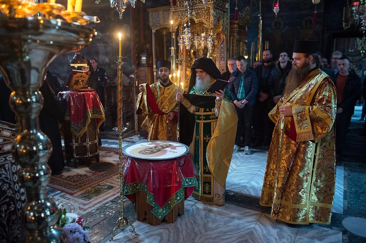 Игуман манастира Григоријата, Високопреподобни архимандрит Христофор, био је главни гост и началствовао је свеноћним бдeнијем и Светом Литургијом.