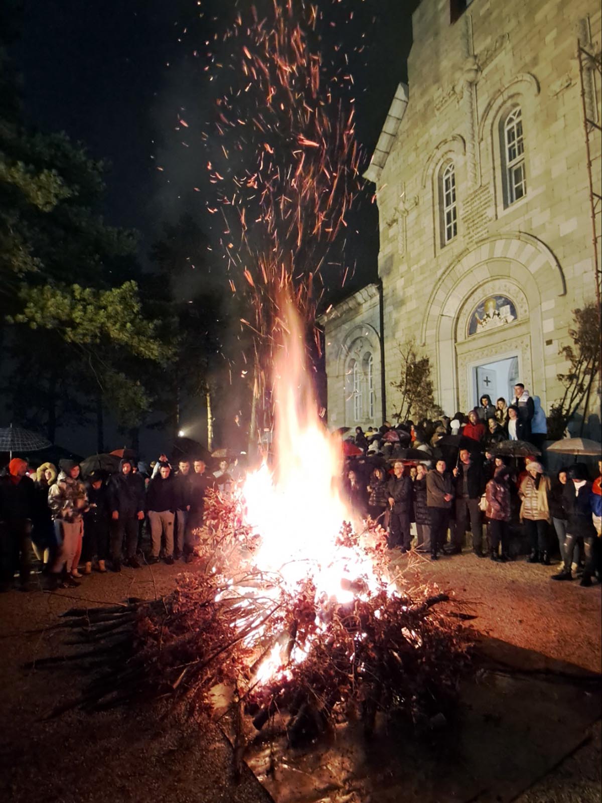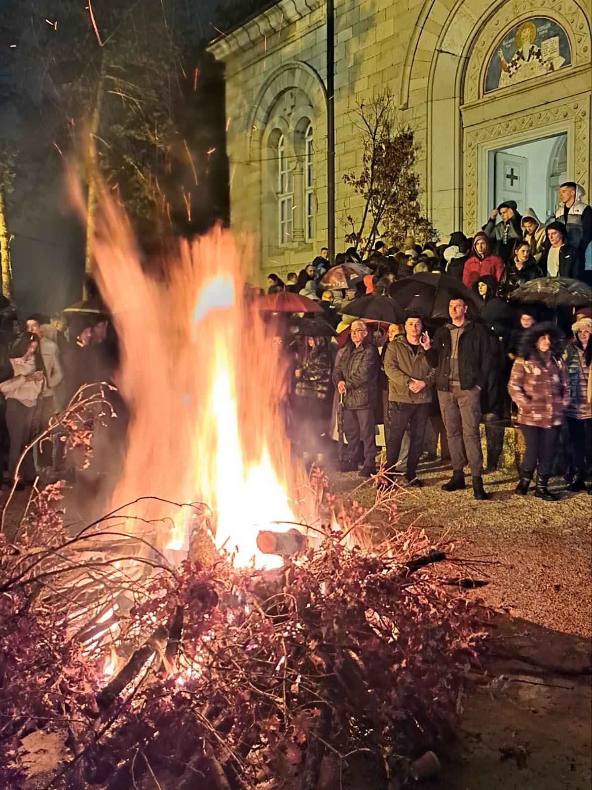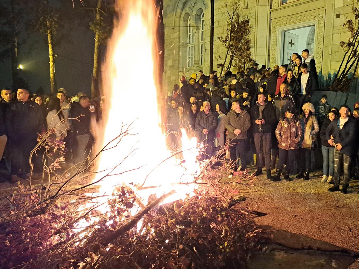 Налагању бадњака присуствовали су предсједници Општине и Скупштине Општине Никшић Марко Ковачевић и Немања Вуковић.