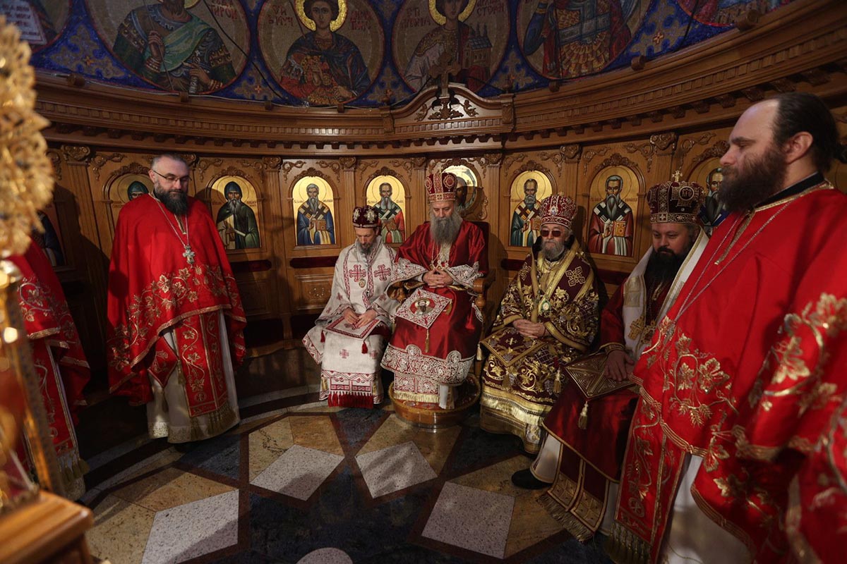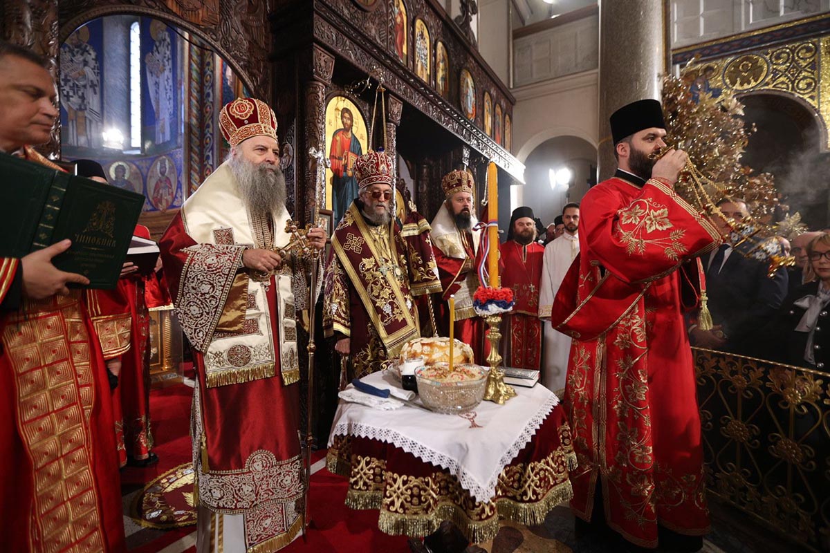 Честитајући верном народу крсну славу, Његова Светост Патријарх г. Порфирије је истакао да га веома радује то што српски народ своју веру сведочи подизањем нових и обновом старих храмова, али пре свега сабирањем светосавског народа у њима.