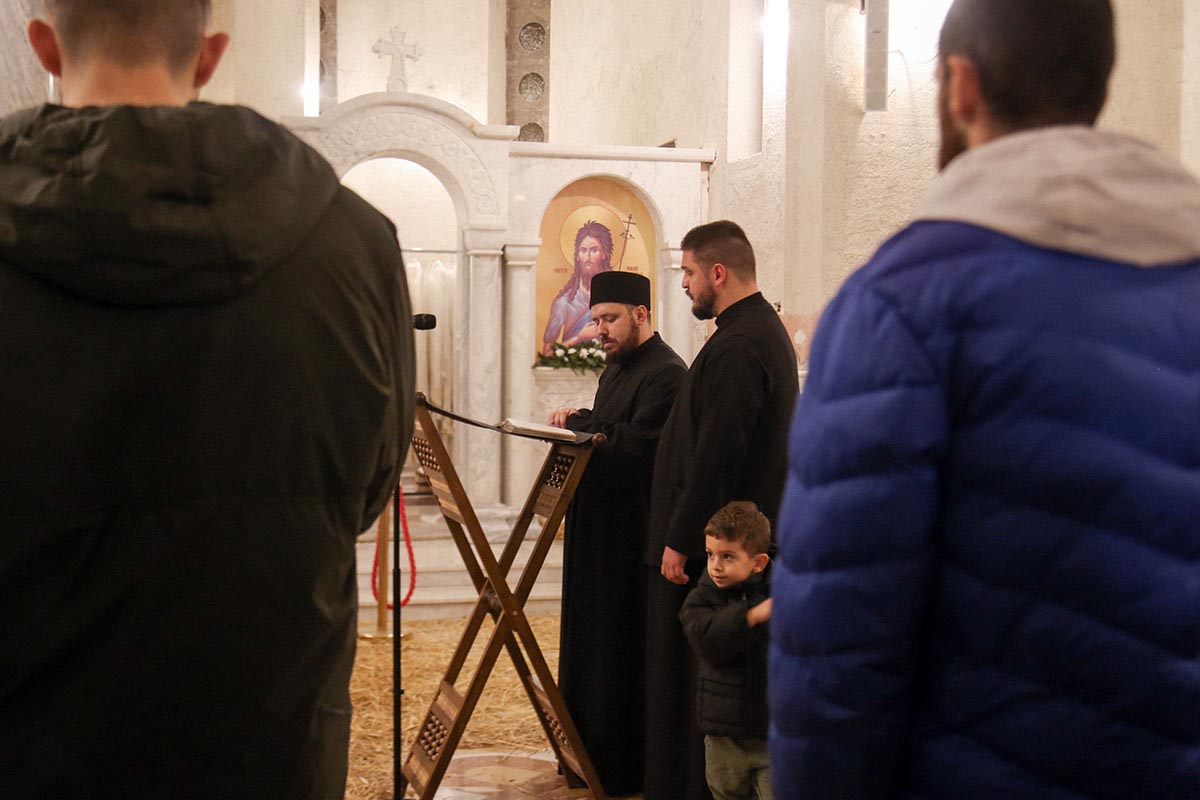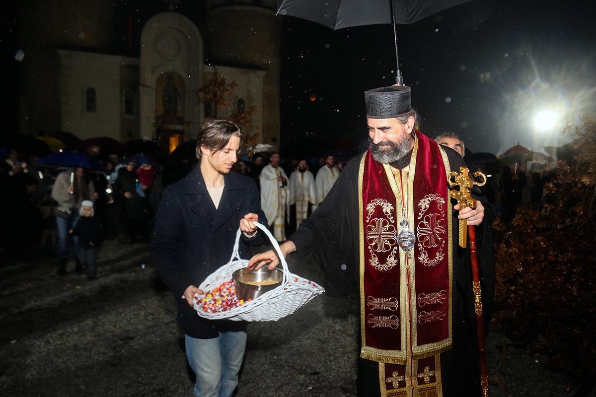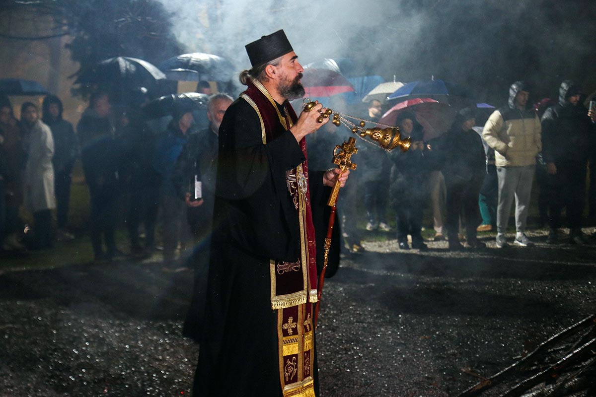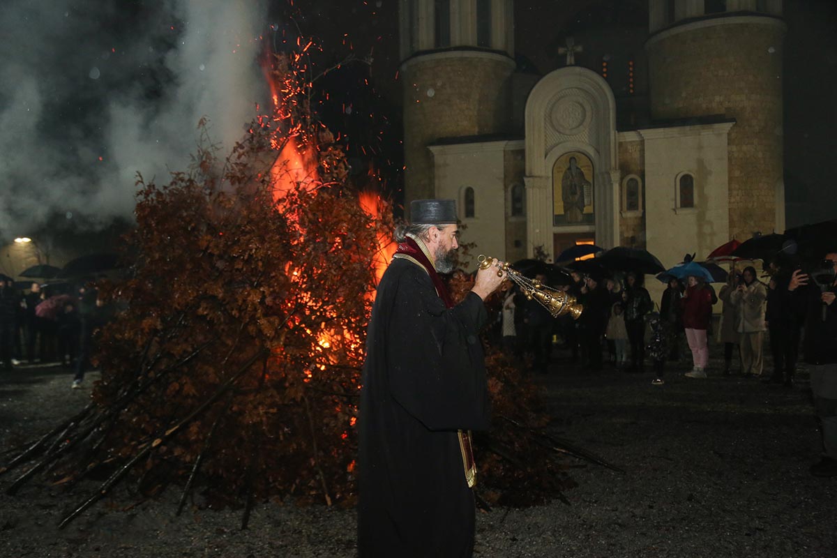 Митропoлит Методије налагао бадњаке испред Саборног храма у Беранама