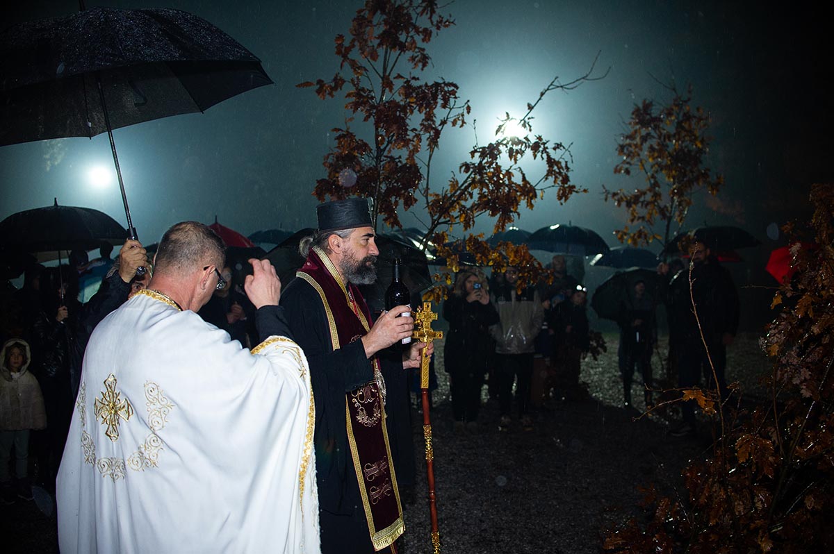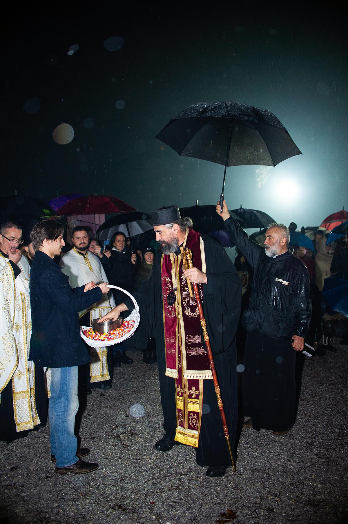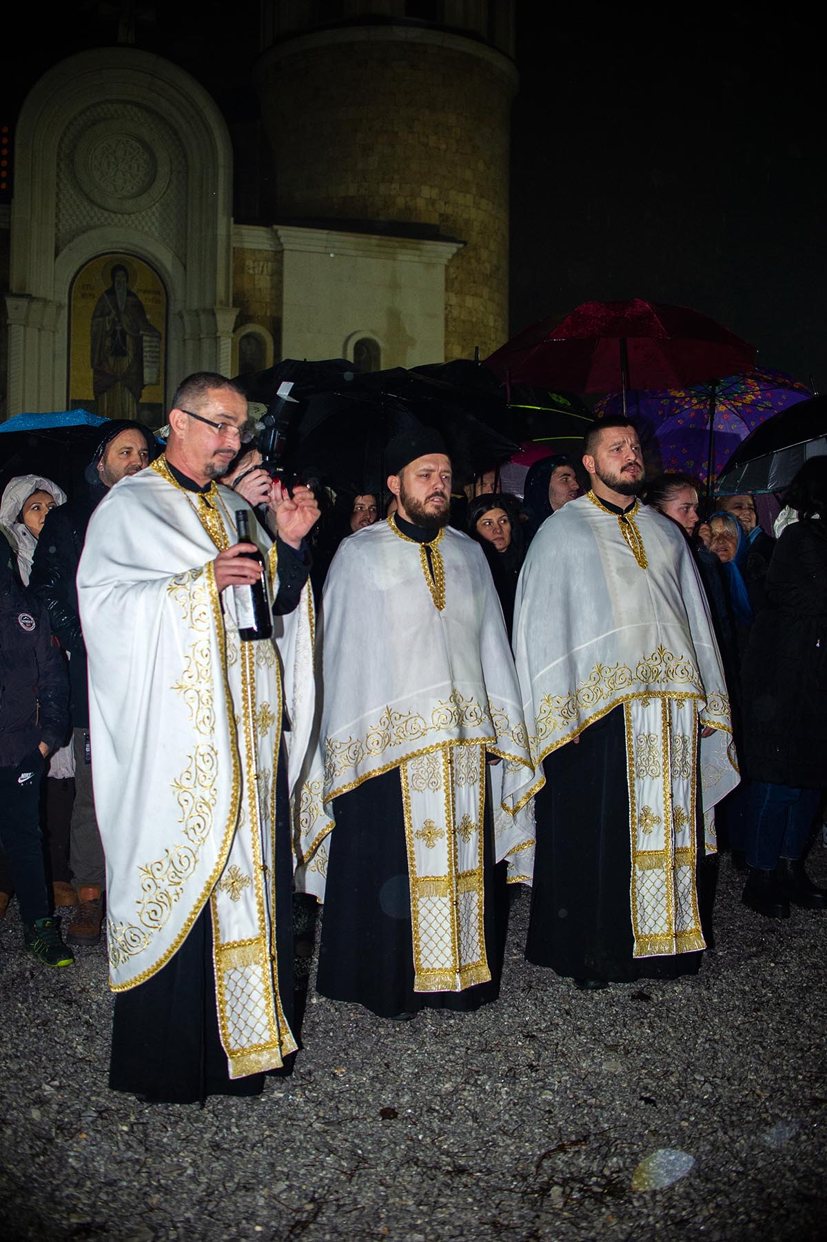 Митропoлит Методије налагао бадњаке испред Саборног храма у Беранама