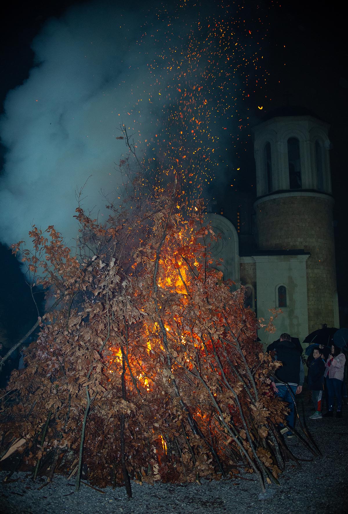Митроплит Методије налагао бадњаке испред Саборног храма у Беранама