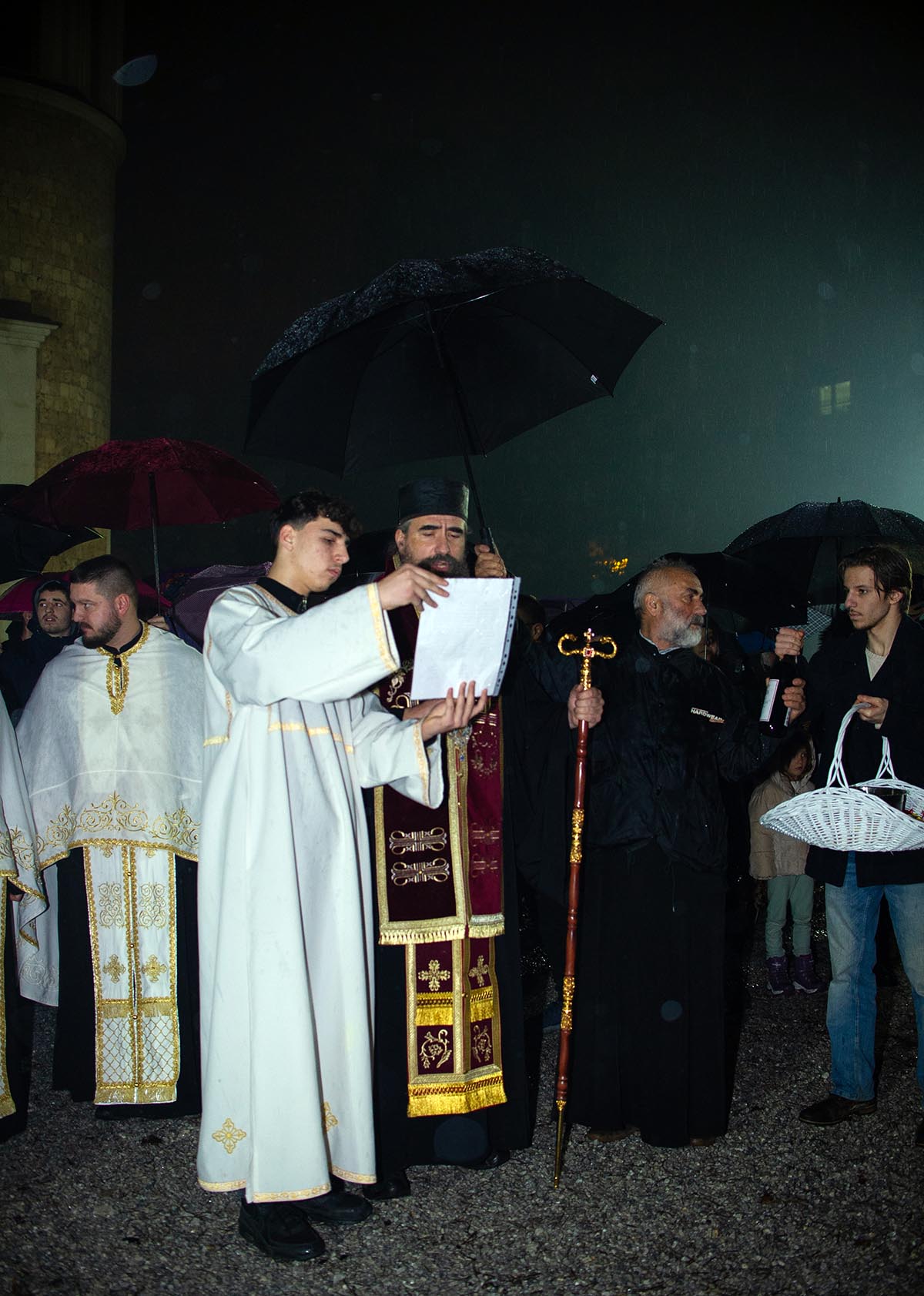 Његово Високореосвештенство Архиепископ и Митролит будимљанско-никшићки Г. Методије благосиљао је и освештао са свештенством бадњаке, на Бадње вече, у уторак 6. јануара 2025. године, испред Саборног храма Светог Симеона Мироточивог у Беранама.